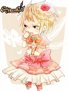 多少筋肉質な二の腕は膨らんだ袖とフリルに隠れ、 腰には目を引く大きな赤いリボン。 ひらりとたなびくスカートの裾に戸惑いながら ヒールの高いピンクのブーツで覚束無く歩く。 表情は堅いが顔立ちはそれなりに整っていて、 金の短髪に白いレースと赤の花の髪飾りが良く映える。 擦れ違った男が思わず二度見してしまうような、 そんな違和感が漂っていた。